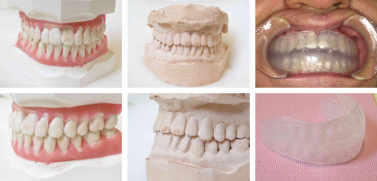 さて、実際の製作方法ですが、術前に型取りして作った模型を、歯科医師からの指示で専門の技工士さんが、良い歯並び・咬合になるようにパラフィンワックスを使って並べ替えます。 これがセットアップ模型と言われるものです。 このセットアップ模型の上で、DP,TP を作り患者さんに はめて頂きます。 当医院では、米国の専門技工所に発注しております。